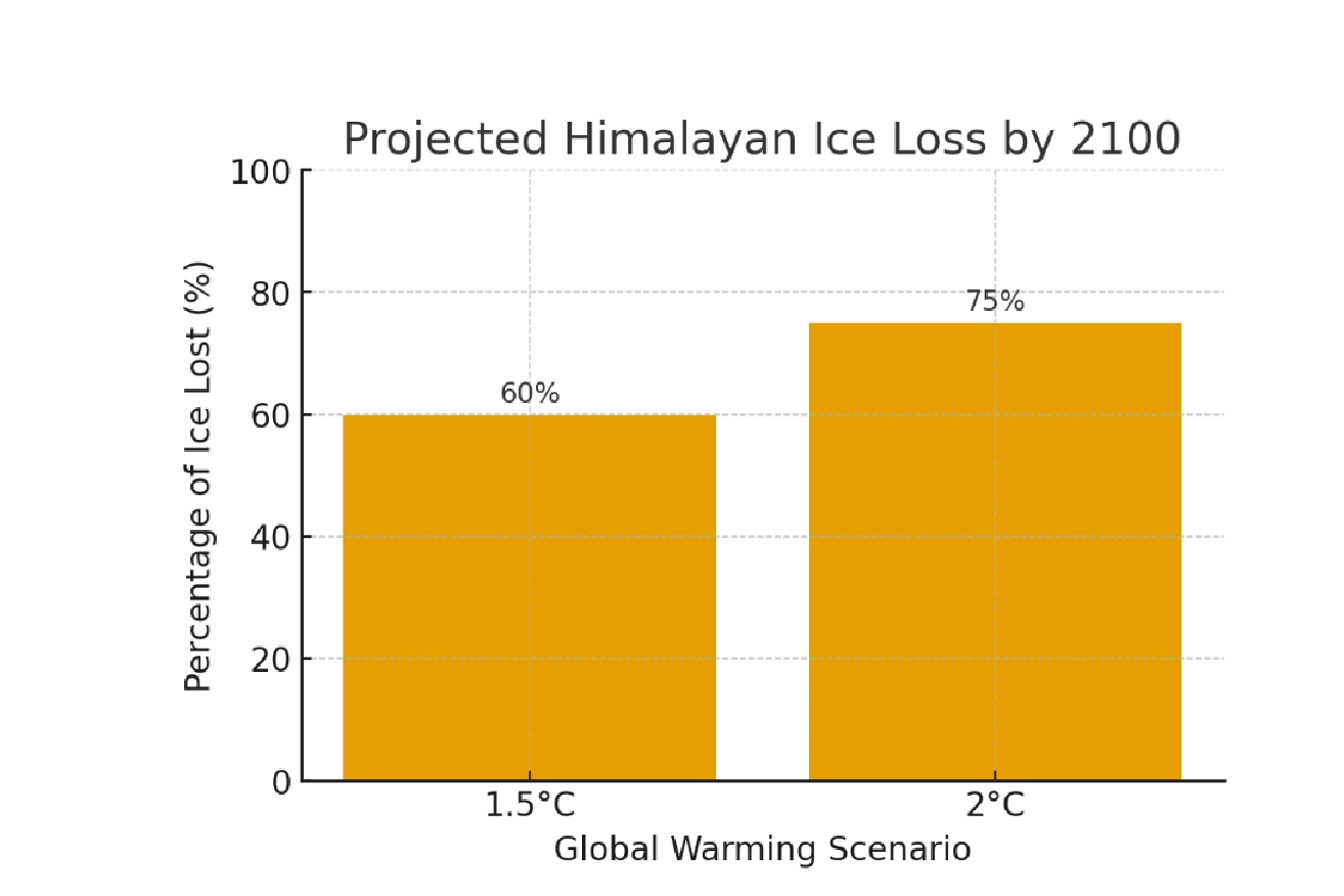 Scientists warn that in a 1.5°C world, up to 60% of Himalayan ice will vanish by 2100. At 2°C, three-quarters will be gone. These are not numbers — they are a countdown clock for our children’s future.